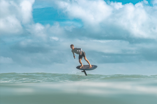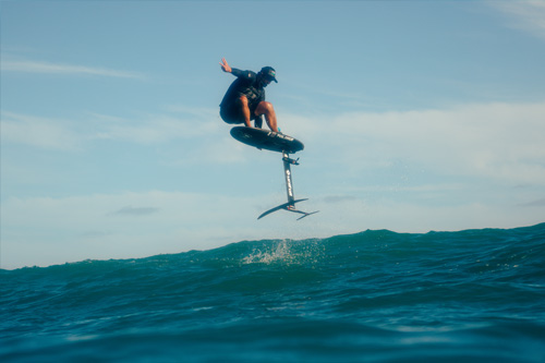 Der integrierte Elektromotor unterstützt dich beim Start auf das Foil. Dadurch kommst du leichter ins Gleiten und kannst dich voll auf Balance, Haltung und Fahrtechnik
